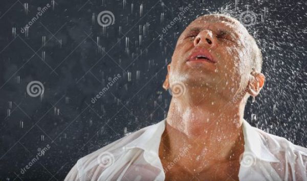 Ele sente descer pelos olhos uma chuva de lágrimas mornas que se confundem com a água da chuva que molha seu rosto