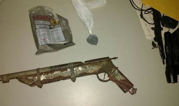 A polícia realizou diligência na casa do suspeito e encontrou uma arma artesanal (garruncha)