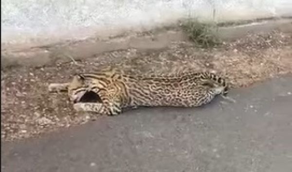 O registro foi feito por um popular que passava na estrada e avistou o animal nas margens da rodovia. VEJA O VÍDEO!