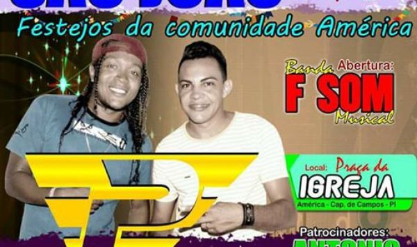 Vai ser nesta quinta-feira dia 22 de junho Banda Pressão e F Som Musical na praça da igreja na comunidade América em Capitão de Campos, a festa será uma grande ferramenta para movimentar o comer