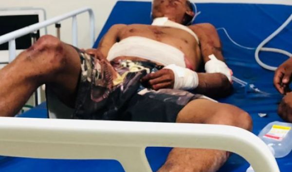 O homem subiu no poste para puxar um cabo de internet quando sua mão triscou no fio de alta tensão.