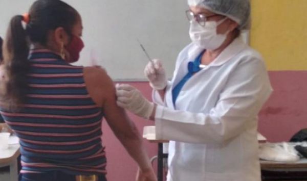 A vacinação com a primeira dose do imunizante da Pfizer ocorreu na Escola Municipal Filomena Braga das 08h às 11h.