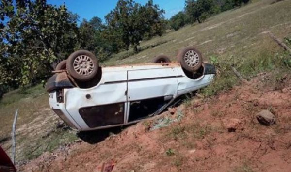 Segundo o motorista, o carro bate em uma pedra na estrada vicinal e acabou se descontrolando, capotando em seguida