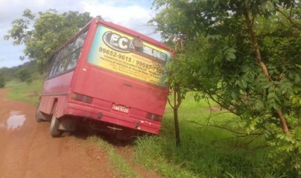 O transporte escolar por pouco não tomba em uma estrada vicinal do município, quando transportava 14 alunos