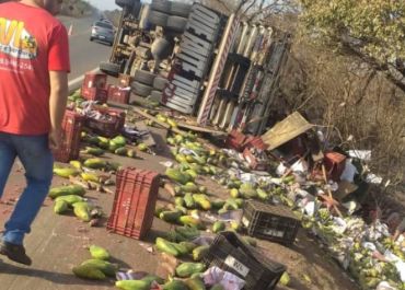 Caminhão carregada de verdura tomba na BR-343, em Campo Maior