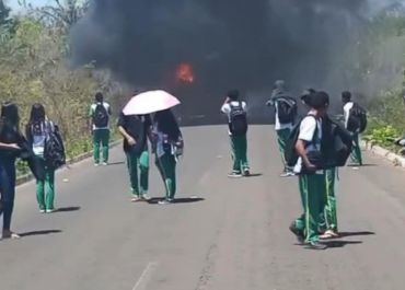 Ônibus escolar pega fogo no momento que transportava alunos na PI-111 em Piripiri (PI)