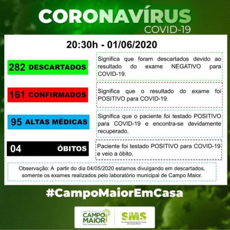 Na noite desta segunda feira (01), a Secretária de Saúde de Campo Maior divulgou uma nota informando a 4° morte causada por Covid-19 no Municipio.