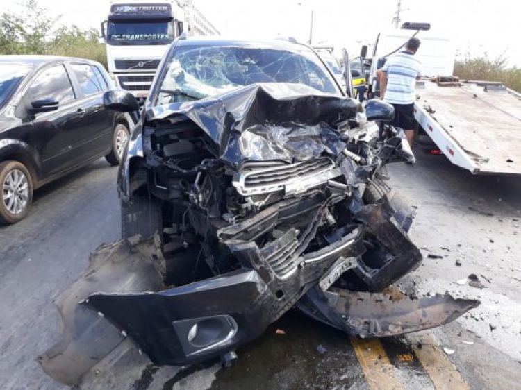 Nesta quinta-feira(09), às 12h15 na BR 343 KM 346,8 na cidade de Teresina/PI, Policiais Rodoviários Federais atenderam a um acidente tipo Colisão Frontal envolvendo o veículo I/CHEVROLET TRACKER LTZ AT conduzido por um homem que sofreu lesões graves e o veículo TOYOTA/HILLUX CD 4X4 conduzido por uma mulher que sofreu lesões leves.