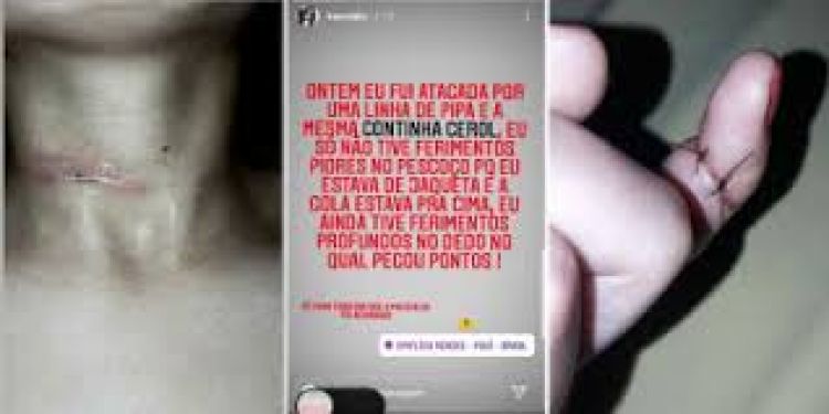 A jovem Keuvia Kerllia usou as redes sociais para relatar um episódio que quase custou a sua vida na tarde desse sábado (08) na BR-020 em Simplício Mendes, a 392 km de Teresina. Ela estava andando de moto quando teve o pescoço e o dedo cortado por uma linha de pipa com cerol.