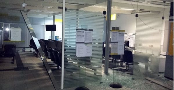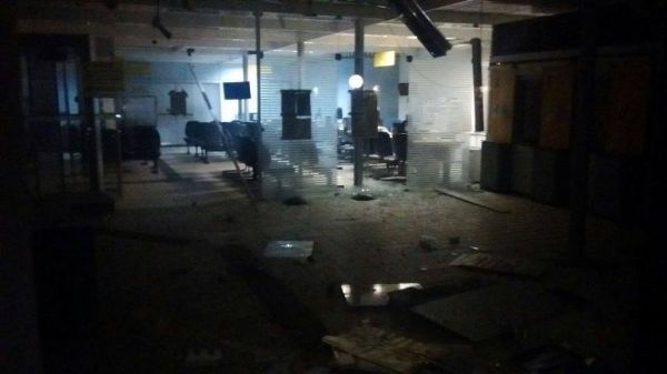 Usando dinamites, os bandidos explodiram dois caixas eletrônicos e reviraram toda a agência bancaria.