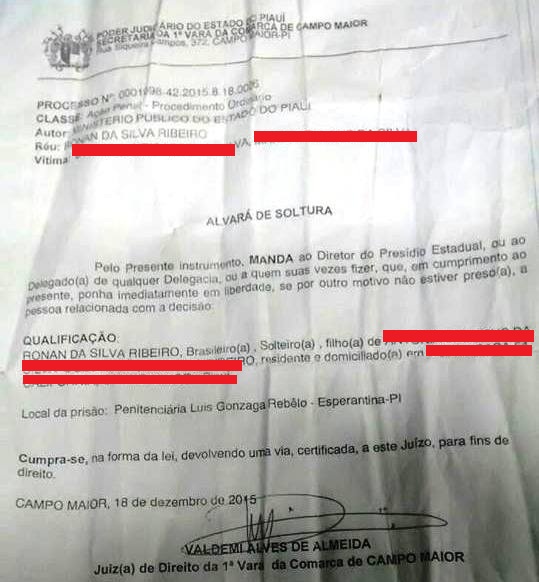 Ronan Ribeiro cumpria pena na Penitenciária Luiz Gonzaga Rebêlo, na cidade de Esperantina, mas no último dia 18 de dezembro ganhou liberdade através de um alvará de soltura devido ao induto de natal.