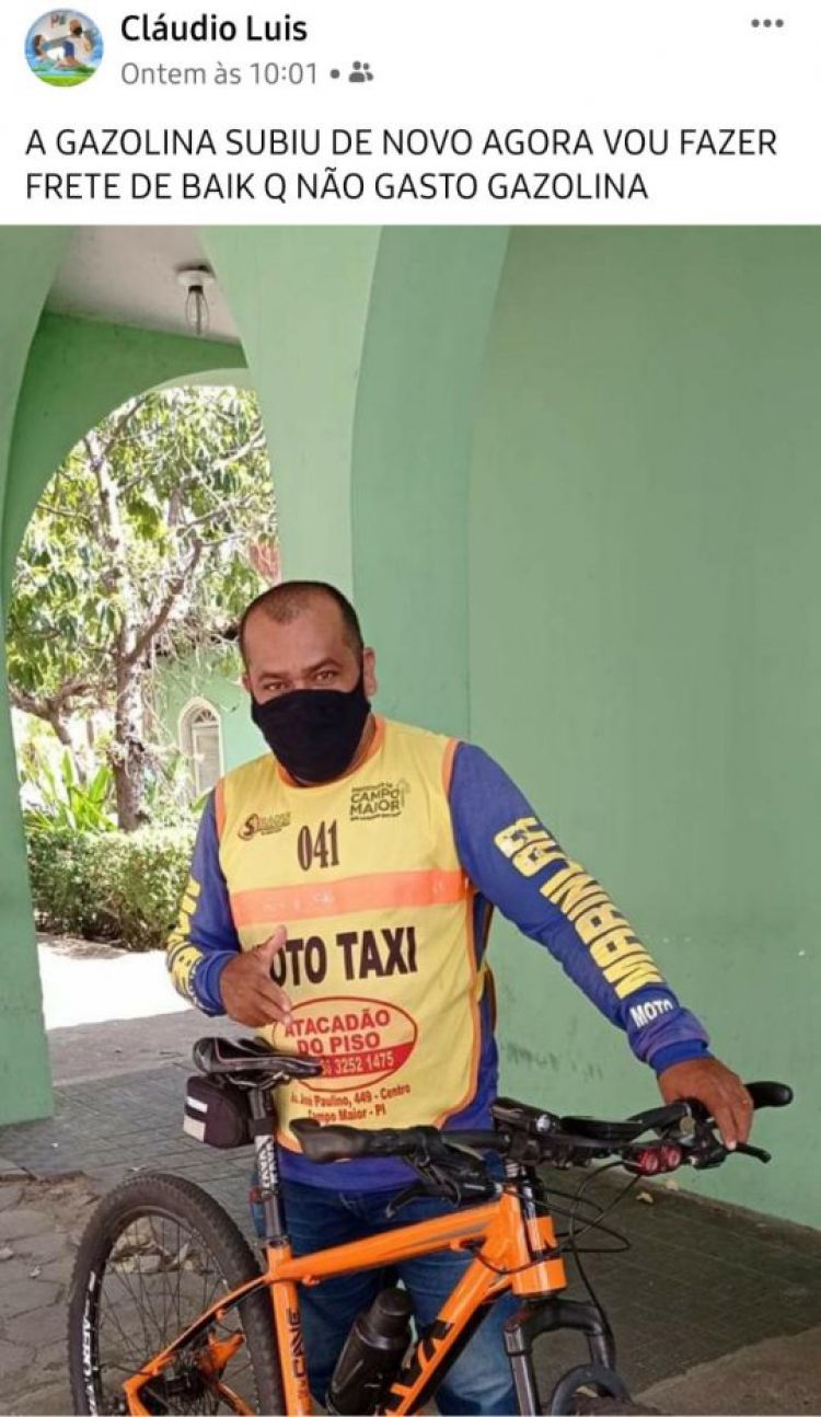 Um mototaxista identificado como Cláudio Luis viralizou nas redes sociais após fazer uma postagem no facebook brincando com o preço da gasolina que subiu mais uma vez em Campo Maior.