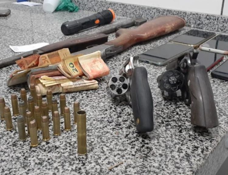 Diligências realizadas indicaram que o criminoso estava usando nomes falsos, revezando seu esconderijo entre imóveis da zona urbana e rural, de onde continuava suas condutas criminosas. Na ocasião, além da prisão, foram apreendidas três armas de fogo, munição e dois veículos utilizados pelos criminosos.