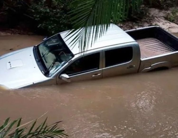Uma caminhonete, modelo Hilux, quase foi arrastada por uma tromba d'água na última quarta-feira (17/03), na zona rural de Barras, no Norte do Piauí.