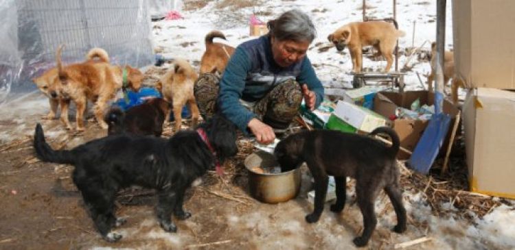A sul-coreana Jung Myoung Sook, 61, uma catadora de lixo reciclável, abriga hoje mais de 200 cães, resgatados das ruas e de restaurantes que servem a carne do animal.