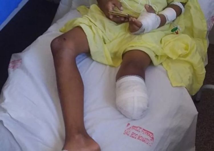 Ela contou que, chegando ao hospital, foi informada de que o hospital sequer tinha suporte para a realização de uma amputação, mas que o procedimento foi feito devido à gravidade da situação. O procedimento foi bem sucedido e o menino teve o membro amputado pouco abaixo do joelho.