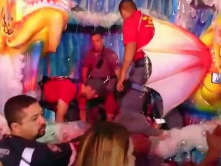 Em seguida, uma mulher que estava na mesma alegoria pediu para descer do carro porque não estava se sentindo bem.