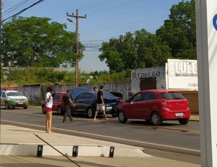 Um acidente envolvendo três carro aconteceu na BR-343 na tarde deste sábado (12) no centro de Altos (PI). Segundo testemunhas os ocupantes dos três carros iam em direção ao litoral quando o primeiro freiou bruscamente para evitar uma colisão e os outros dois veículos foram colidindo na traseira.