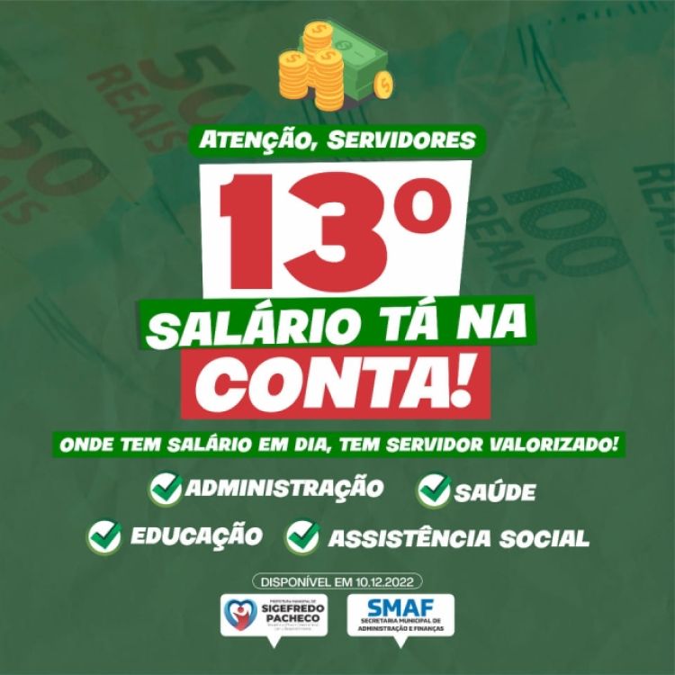 A Prefeitura de Sigefredo Pacheco (PI) antecipou neste sábado (10) o pagamento do décimo terceiro para os servidores da educação, saúde, administração e assitência social do município.