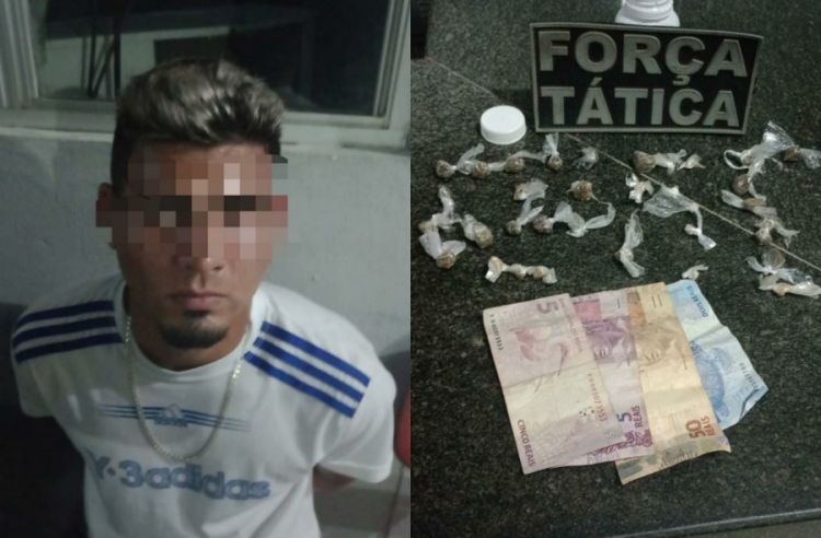 Ele foi autuado em flagrante pelo crime de tráfico de drogas.