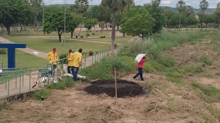 As ações se concentram às margens do Riacho Canto, próximo a Praça Parque da Cidade, que está recebendo a plantação de cerca de mil mudas de Sabiá, Ipê Amarelo, Ipê Rosa, Ipê Branco, Ipê Roxo e Moringa.