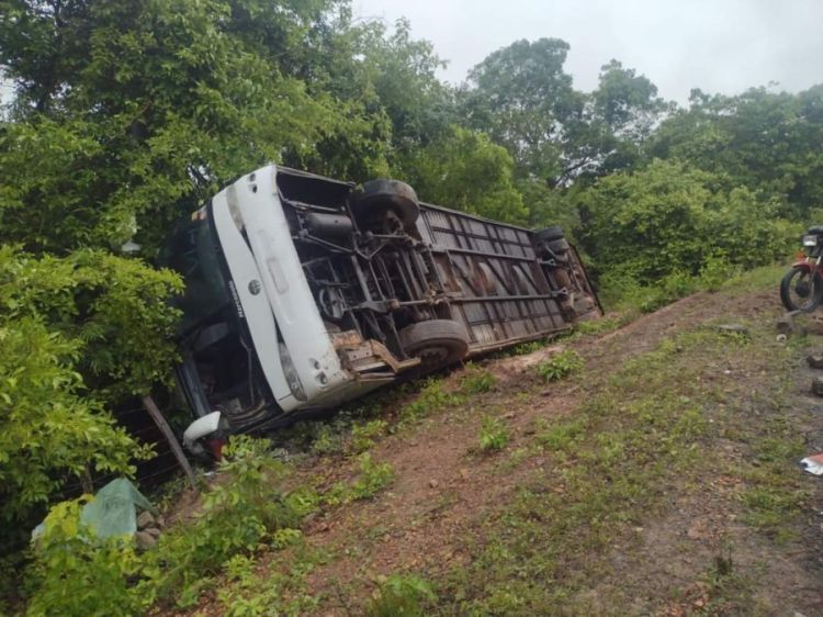 O ônibus tombou em Nossa Senhora dos Remédios. Estava vindo de Luzilândia e ia tocar em Miguel Alves. O acidente foi por volta das 3 da manhã de hoje. Tinha muita neblina na via, que fez com que o motorista desviasse perdendo o controle do ônibus.