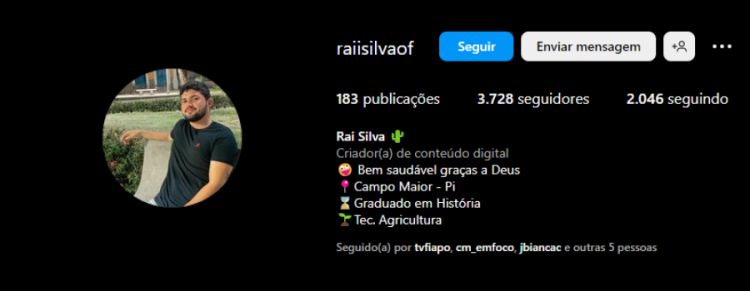Raí Silva foi o vencedor do 1º Festival de Humor de Campo Maior realizado no ano passado. Ele usa sua conta para veiculação de conteúdos humoristicos.