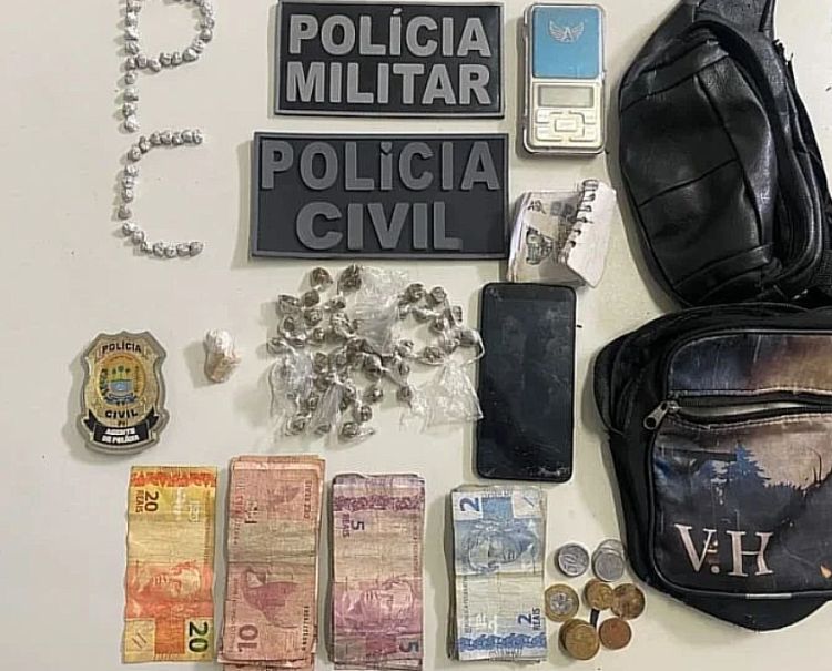Com o menor foram apreendidos também 44 trouxinhas de substância análoga ao crack, uma pedra grande de crack, 48 trouxinhas de substância esverdeada análoga à maconha, bem como a quantidade de R$215,80 em dinheiro trocado, caderneta de anotação e balança de precisão, configurando o tráfico de drogas.
