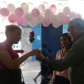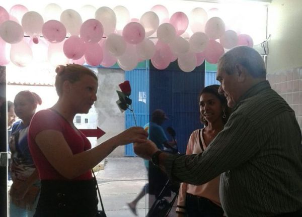 Cada mulher que visitou o complexo recebeu flores e bombons de chocolate pela passagem do Dia Internacional da Mulher.