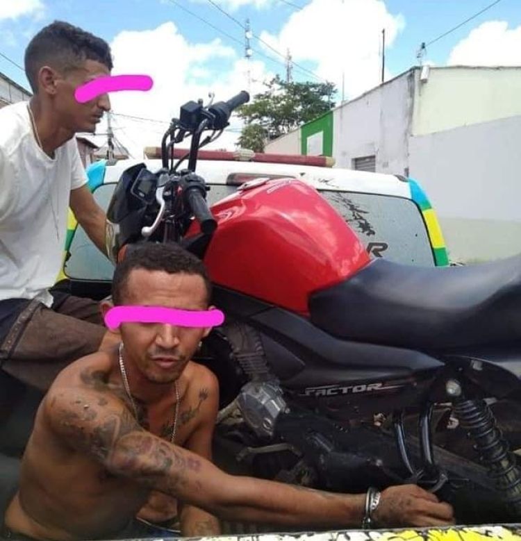 Segundo informações do Sargento Luis Carlos, a motocicleta que havia sido roubada na noite do dia 19 de março, estava em posse de um homem identificado como Raione que tem passagem no polícia por roubos, e um outro homem identificado como Gabriel Muniz Gomes.