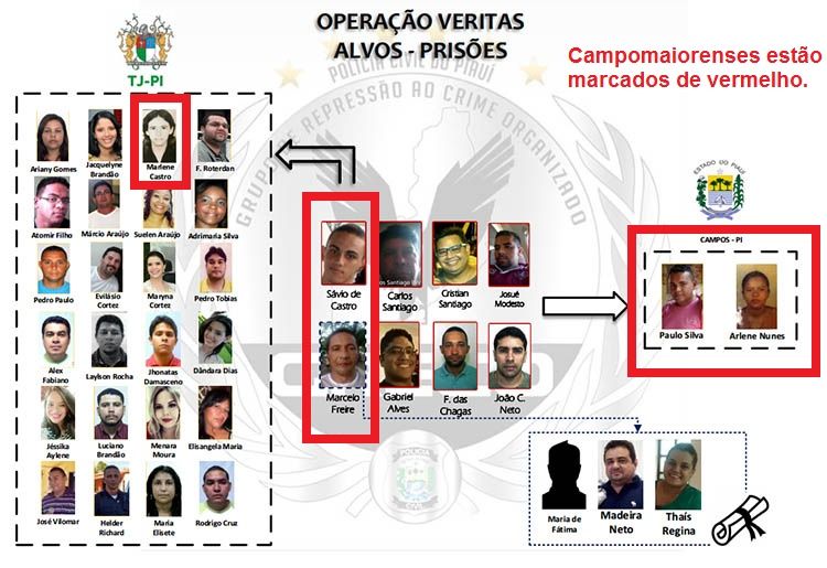 O coordenador do Grupo de Repressão ao Crime Organizado (Greco), delegado Carlos César Camelo, disse que entre os presos estão candidatos que receberam o gabarito por mensagens de texto no celular e os líderes da quadrilha que fraudava concursos públicos no Piauí e Maranhão.