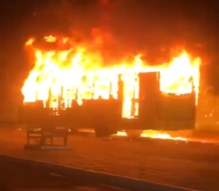 Ao todo, cinco homens atearam fogo no veículo. Eles ainda não foram identificados. O Corpo de Bombeiros foi acionado para combater o incêndio.