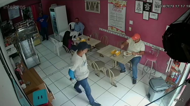 Nas imagens, é possível ver o suspeito agindo com tranquilidade enquanto pega valores, carteiras e outros objetos das pessoas presentes no estabelecimento. O vídeo mostra ainda o suspeito entrando na lanchonete como se fosse um cliente.