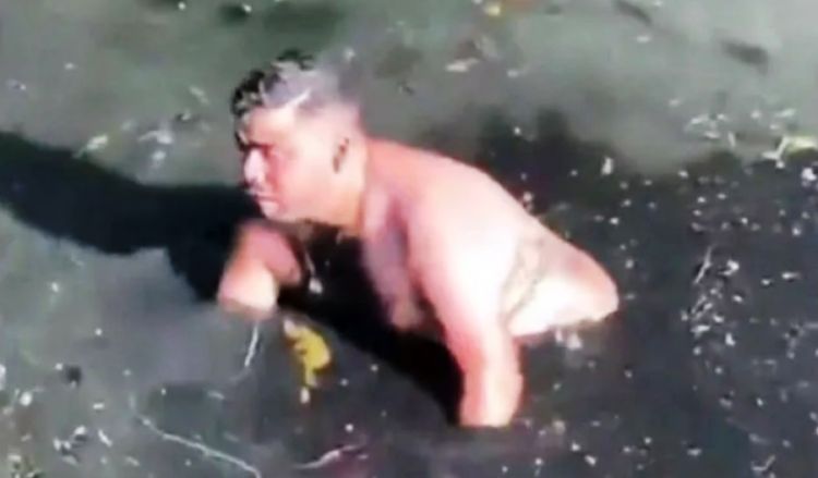 Um homem pulou em um valão para resgatar o celular, após deixá-lo cair na água suja. O episódio foi na manhã do último sábado (6), no entorno do Riocentro, na Zona Oeste do Rio de Janeiro.