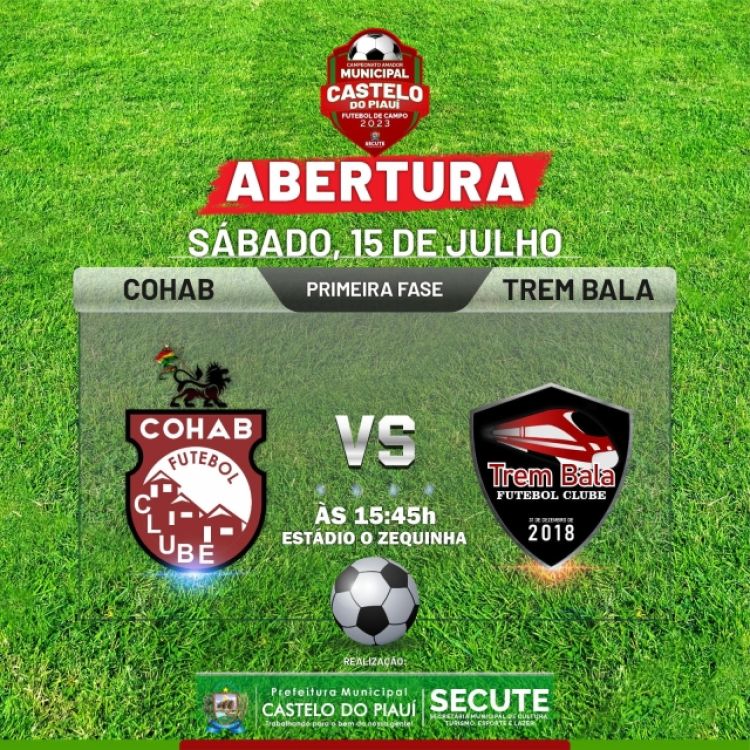 A Prefeitura de Castelo do Piauí através da Secretaria de Esportes realizará neste sábado (15) a abertura do Campeonato Amador Municipal Futebol de Campo 2023. Será a partir das 15h no Estádio O Zequinha com o confronto Cohab e Trem Bala.