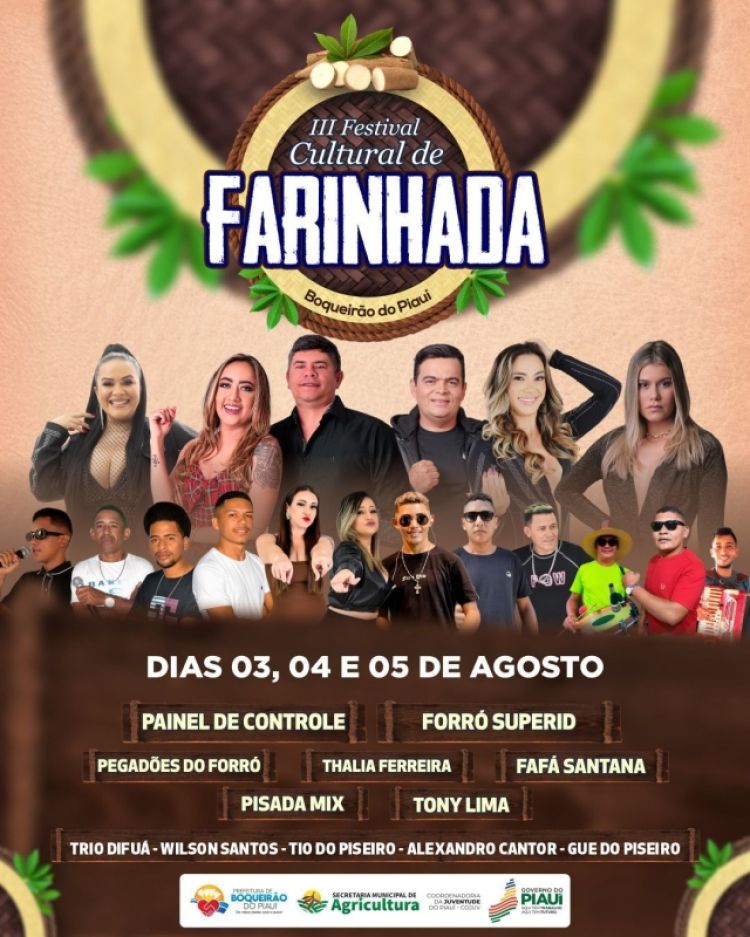 A 3ª edição do Festival Cultural de Farinhada do município de Boqueirão do Piauí começa nesta quinta-feira (03), e segue até sábado dia 05.
