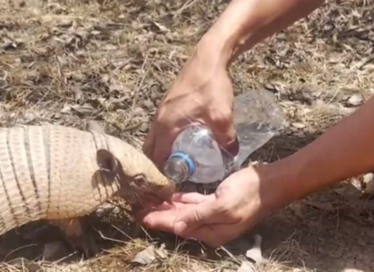 Em meio à caatinga piauiense, no período mais seco do ano, um flagrante de um tatu-peba bebendo água na mão de uma pessoa. O registro foi do ambientalista piauiense Dionísio Carvalho, que publicou nas redes sociais o momento de intimidade e cortesia com o pequeno animal selvagem.