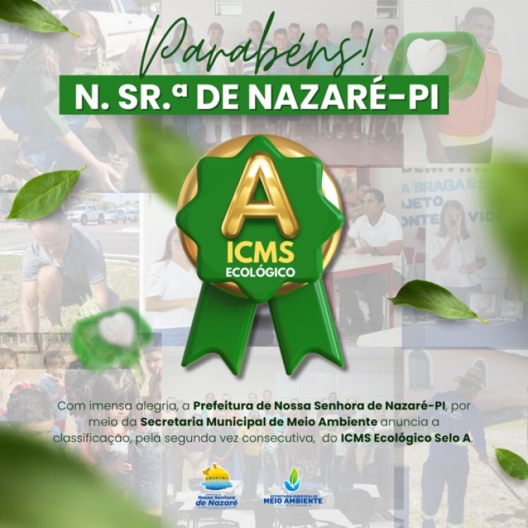 O Município de Nossa Senhora de Nazaré, Piauí conquistou pela segunda vez consecutiva o Selo A do ICMS ecológico.
