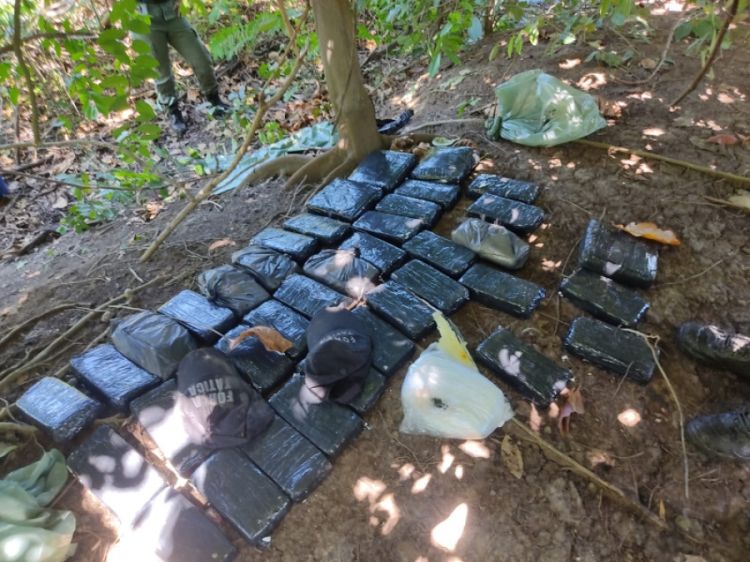A guarnição do 9º BPM já possuía informações acerca dos entorpecentes que estavam escondidos nesta área de difícil acesso. O material encontrado pela Força Tática do 9º Batalhão da Polícia Militar (FT - 9º BPM) é composto por 36 tabletes de pasta base cocaína e 4 tabletes de maconha tipo Skunk.