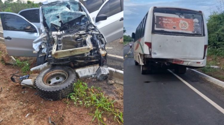 Uma van que faz linha entre José de Freitas e Teresina parou para embarcar um passageiro quando foi atingida na traseira por um veículo modelo Voyage. O carro ficou completamente destruído com o impacto.