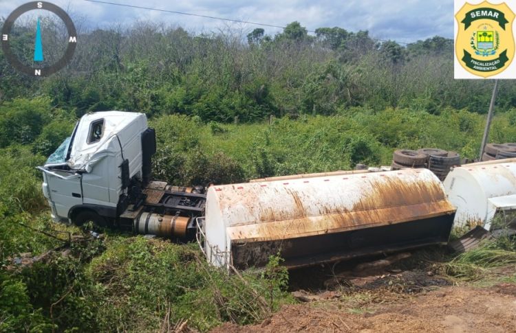 A Secretaria Estadual do Meio Ambiente e Recursos Hídricos (Semarh) fiscaliza a retirada de aproximadamente 200 toneladas de solo contaminado por resíduo de óleo, após uma carreta que transportava óleo diese tombar, na BR-343 em Piripiri, na última quarta-feira (02).