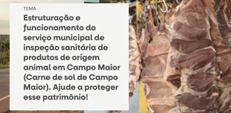 O objetivo é apresentar à sociedade a necessidade de implantação e fortalecimento do serviço de inspeção no município, especialmente no que diz respeito à produção de carne de sol de Campo Maior, um dos produtos mais tradicionais da região. O MPPI destaca que a inspeção sanitária é fundamental para garantir a qualidade, a segurança alimentar e a valorização dos produtores locais.