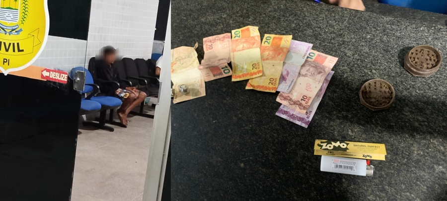 Ao chegar no local, os policiais constataram o crime e fizeram a detenção do menor com trouxas de maconha e mais de 100 reais em espécie.
