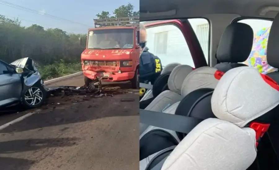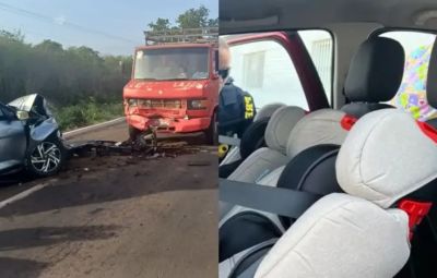 Segundo a Polícia Rodoviária Federal (PRF), as informações preliminares coletadas no local apontam que o carro invadiu a contramão e bateu de frente com o caminhão.