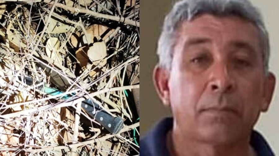 Nas proximidades do imóvel, a polícia localizou uma faca, um facão e um machado. A vítima apresentava perfurações provocadas por arma branca, além de outras lesões pelo corpo.