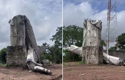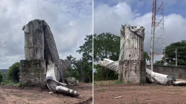 Cristo Redentor desaba após chuva e ventos fortes em cidade no Norte do Piauí
