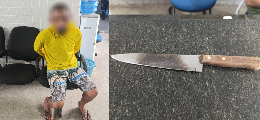 Durante a abordagem, os policiais encontraram com o suspeito uma arma branca, do tipo faca.