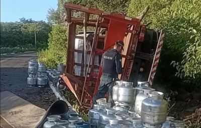 Um caminhão carregado com botijões de gás de cozinha tombou na ladeira do povoado Cipó, na zona rural de Lagoa de São Francisco, no Norte do Piauí. O acidente ocorreu na tarde de sábado (28).