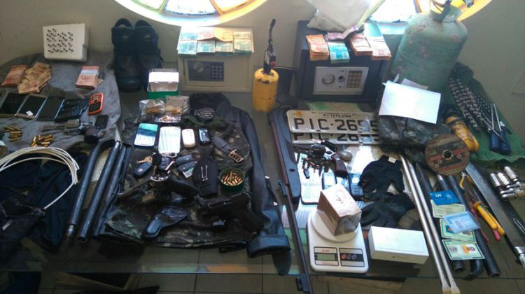Em uma das residências alvo da investigação, que funcionava como um ponto de apoio do grupo, foram apreendidos vários materiais usados nos roubos. Durante as prisões, grande variedade de ferramentas, materiais explosivos, cofres, dinheiro, drogas e várias armas foram recolhidas pela Polícia.