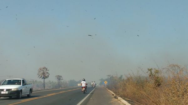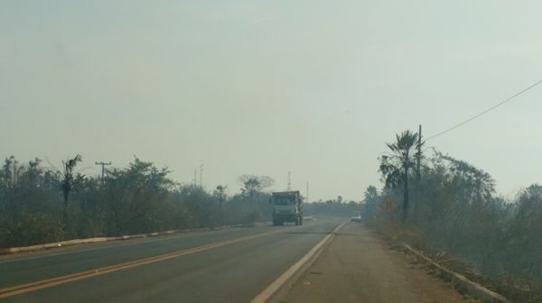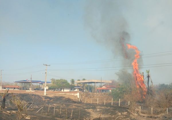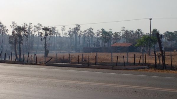 As chamas, que ontem se concentravam de um lado da BR-343, passou para o outro lado e vários hectares de terras com vegetação rasteira e carnaúbas foram consumidos. Algumas casas, como no Haras SR Carnaúba e na chácara da “Rosa Freitas” ficaram cercadas pelo fogo.